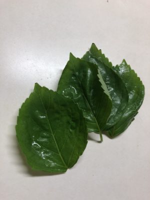 先に、畑に植えてあった大葉を何枚か収穫…というより、葉の間引き。