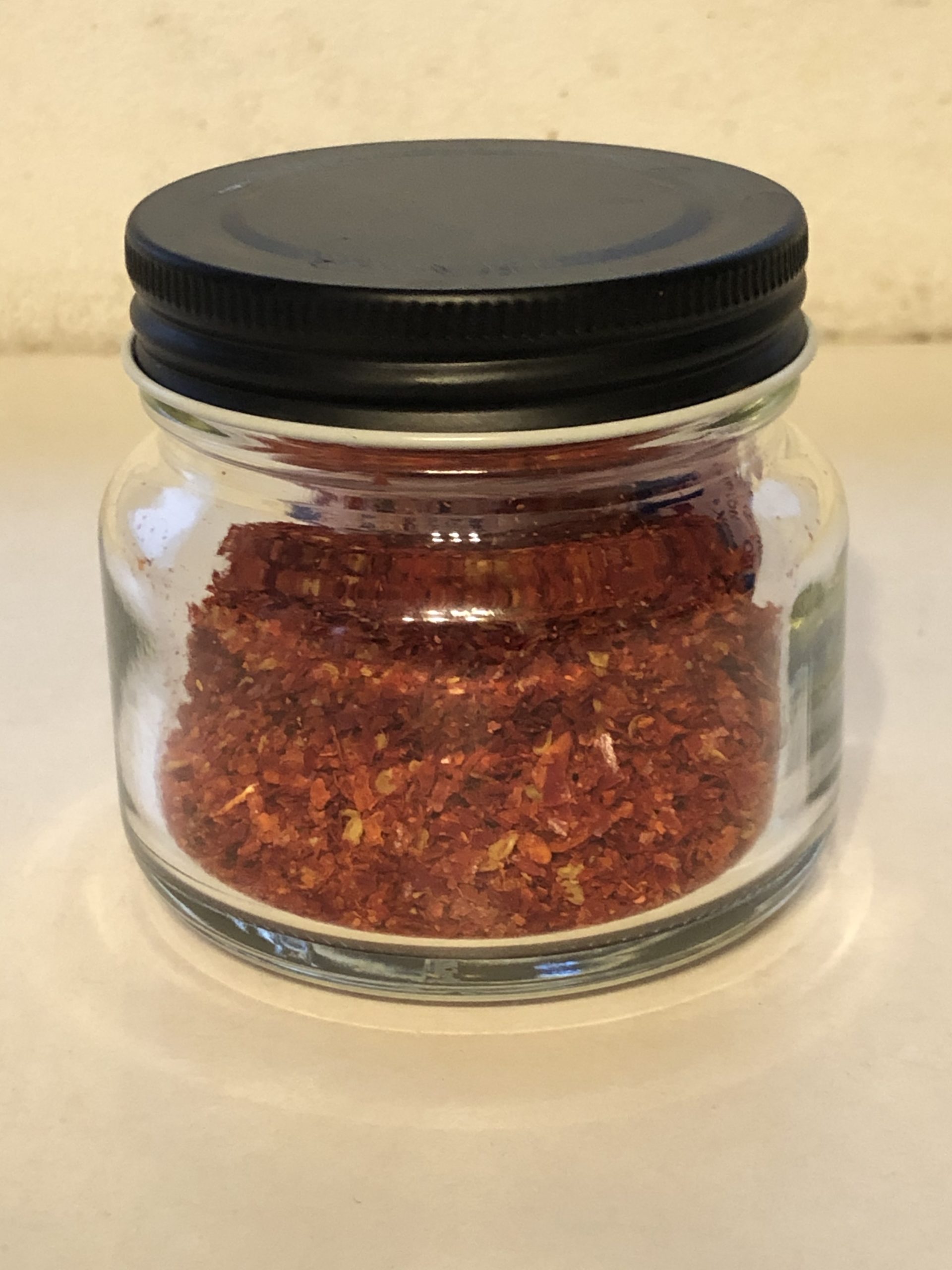乾燥して、種をとって…まではいいのですが、一味唐辛子にする勇気がわかない。
