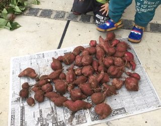 出産で手が回らず、ほんとにほんとに放ったらかしで、8月に1度つる返しをしただけだったので、やはり小さいさつまいもばかりでした。