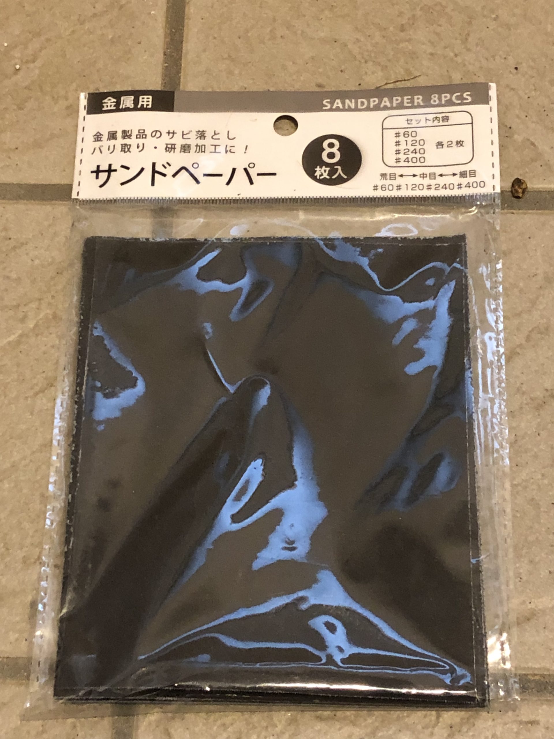 今回唯一買ったのはこれだけ。セリアの金属用サンドペーパー買いました。