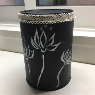 まだまだミルク缶感が否めなかったので、アクリル絵の具で絵を描いてみることに。