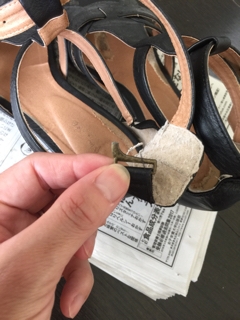 特にここ。サンダルの紐を引っ掛ける重要な留め具が割れてしまってます。