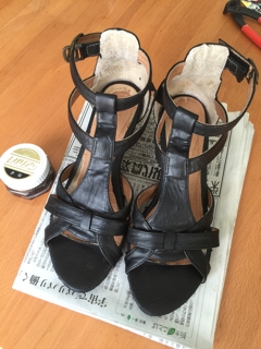 ついでに黒シューズ用の磨きクリームで仕上げれば…。