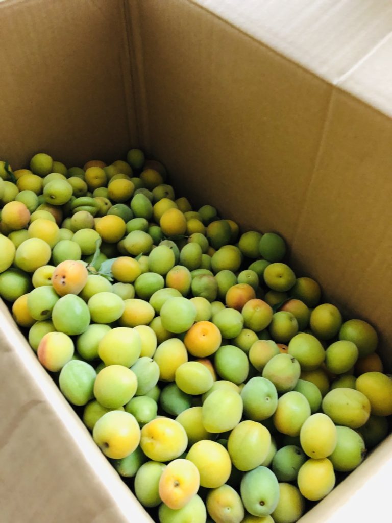 お隣さんからまた今年も箱いっぱいの梅をいただきました。