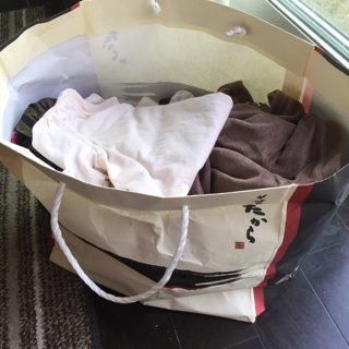 これはウエス待ち軍の袋。日頃いらなくなった服をポンポン放り込んでます。