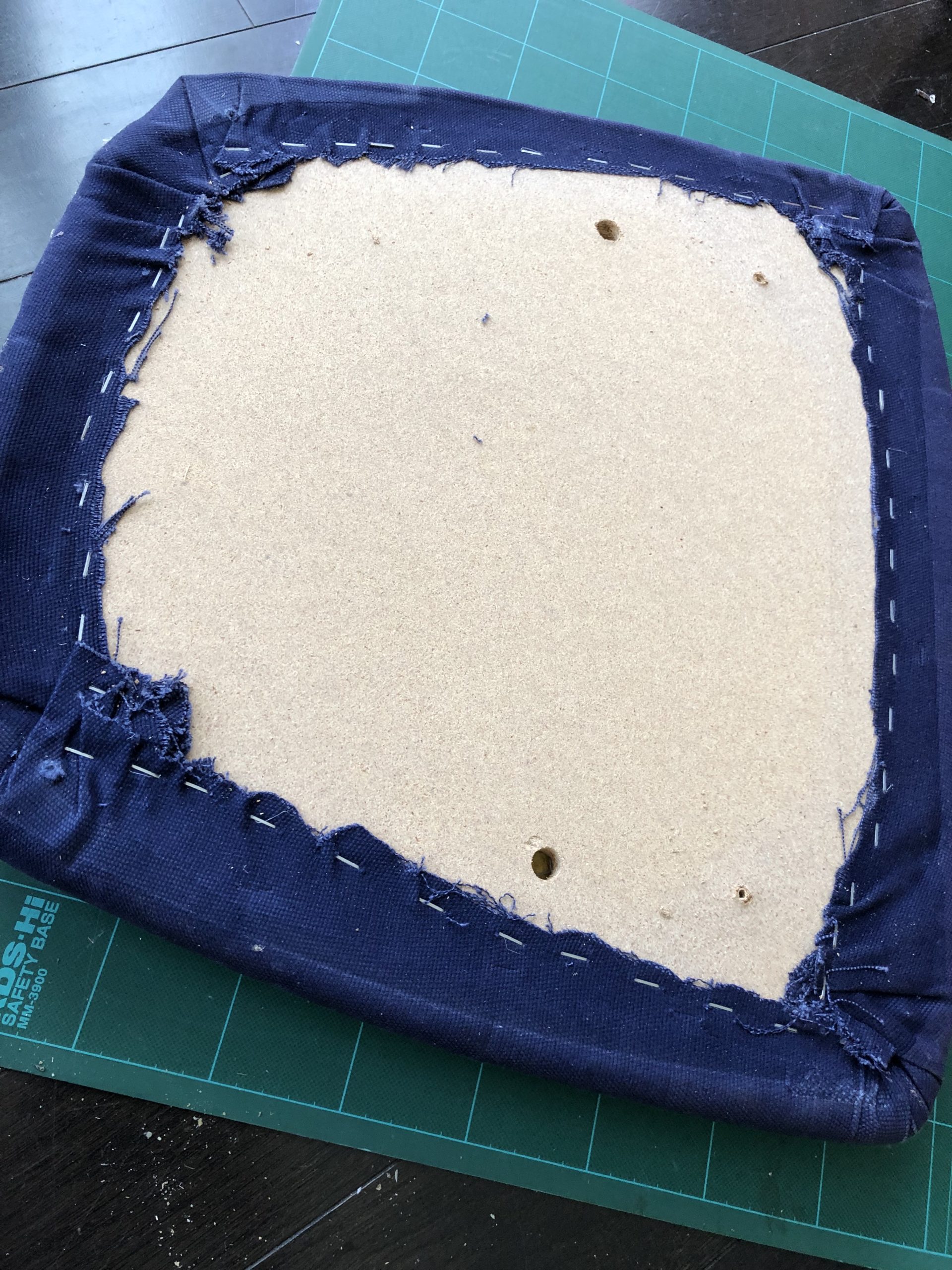 というわけで、家にある生地を使って自分で張り替えることにしました。