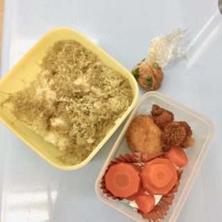 ・唐揚げと人参煮たもの。(昨日の夕飯の残り)