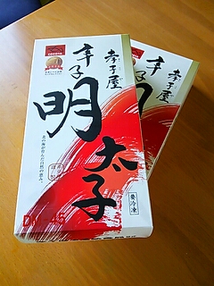 「辛子明太子」と書かれた立派な箱がふたつも…。